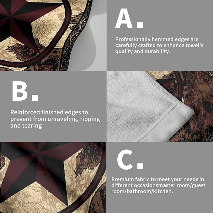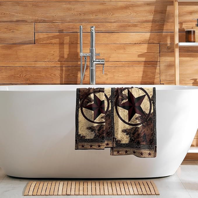 - 【Easy Care】This set of 2 western texas star hand towels is machine washable, highly absorbent and dries quickly.Wash with warm water less than 40℃ .No iron and bleach