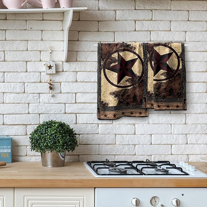 Western Texas Star Kitchen Towels Set of 2 Rustic Vintage Stars Wood Pattern 14x28 Tabletop Decor