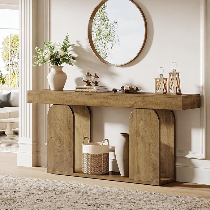 - Rustic Farmhouse Charm: Crafted with a rustic wood grain finish and a sturdy wood frame, this console table adds a warm and inviting aesthetic to your living room, hallway, or foyer