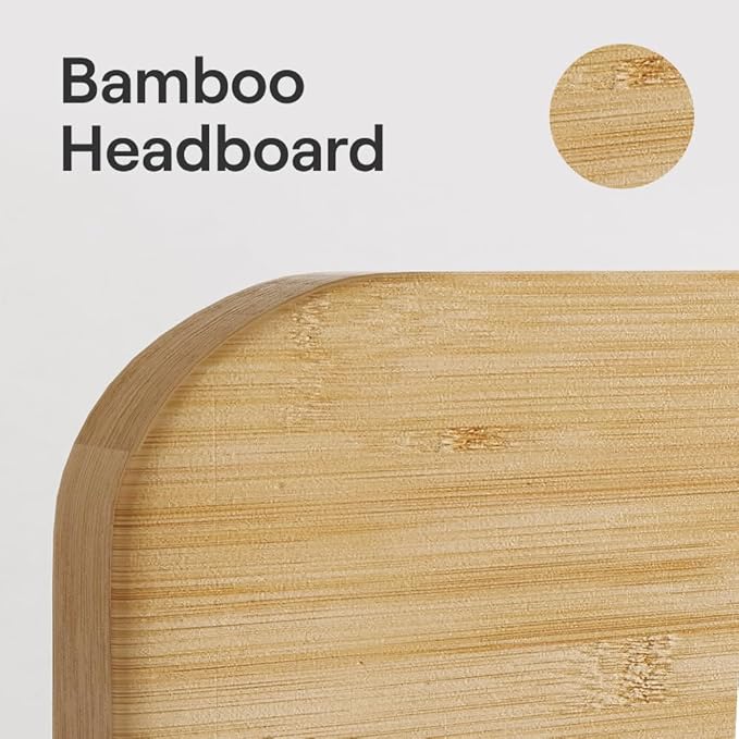 Nectar Bamboo Platform Bed Frame & Headboard - Natural - Full - Floating Center Support Legs - 12” Height - Easy Tool Free Set Up - Contemporary - Sturdy Wooden Support Slats - Holds Up To 800 Pounds