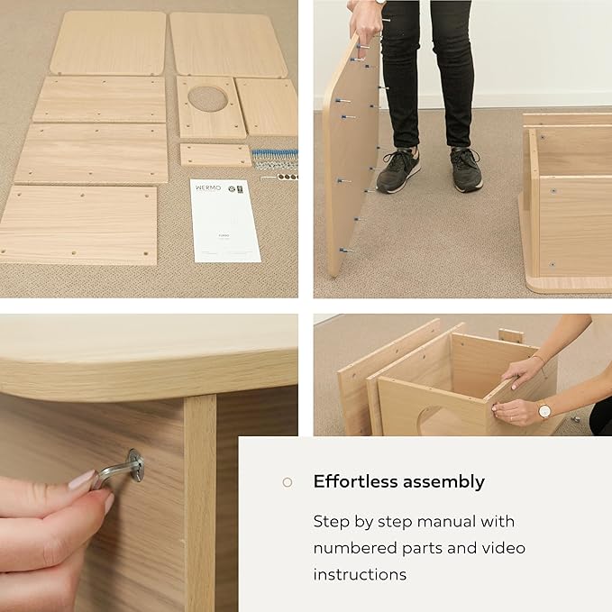 - BE THE NEXT FAN OF THE EASY 45 MINUTE ASSEMBLY as all of the furniture details of the enclosed cat bed are numbered for easy identification. This makes following the written step by step manual and instruction video convenient. The assembly of the small end table is designed for simplicity, so you can start enjoying your new sofa end table from the moment you unpack it.