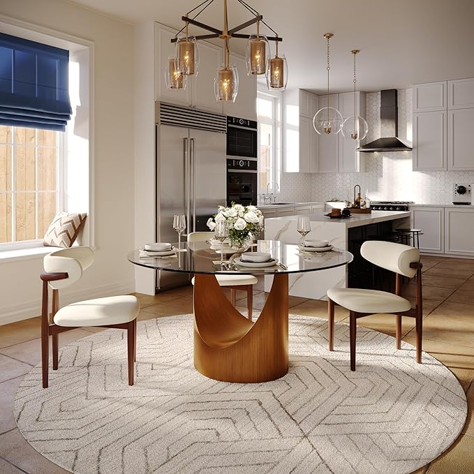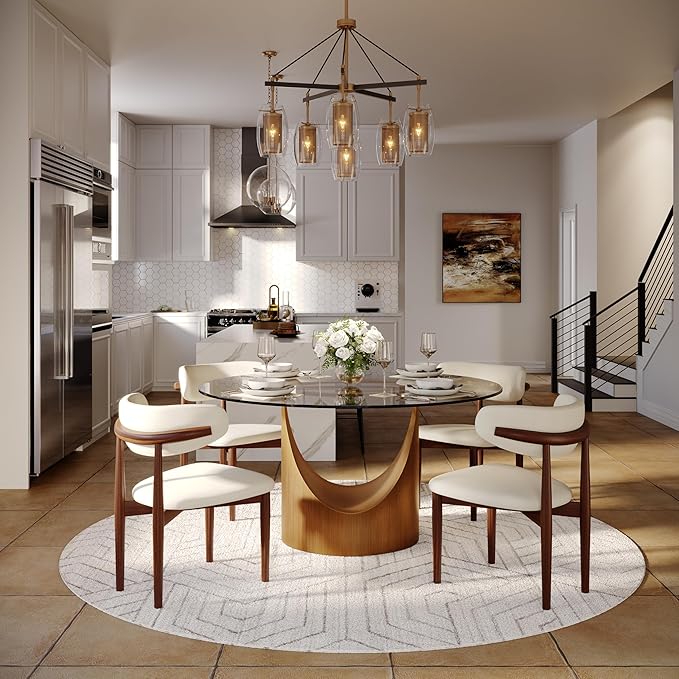 - Smooth Edge Design: The dining tabletop pattern is glossy white marble. Thickness of the tabletop is 12mm, and the edge of the tabletop adopts a humanized smooth edge design to prevent collision, making your family and pets feel more at ease at home. The size of this round dining table is 51 inches, table is recommended for 4-6 people