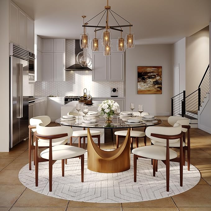 - Smooth Edge Design: The dining tabletop pattern is glossy white marble. Thickness of the tabletop is 12mm, and the edge of the tabletop adopts a humanized smooth edge design to prevent collision, making your family and pets feel more at ease at home. The size of this round dining table is 60 inches, table is recommended for 4-6 people