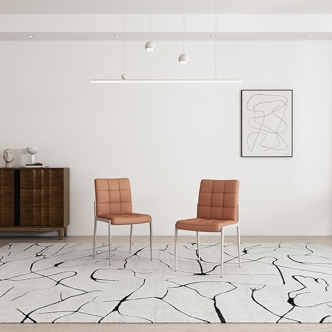 Dining Chairs (Set of 2), PU Leather Modern Armless Kitchen Dining Room Chairs, Upholstered Decorative Side Chairs with Metal Feet (Brown)