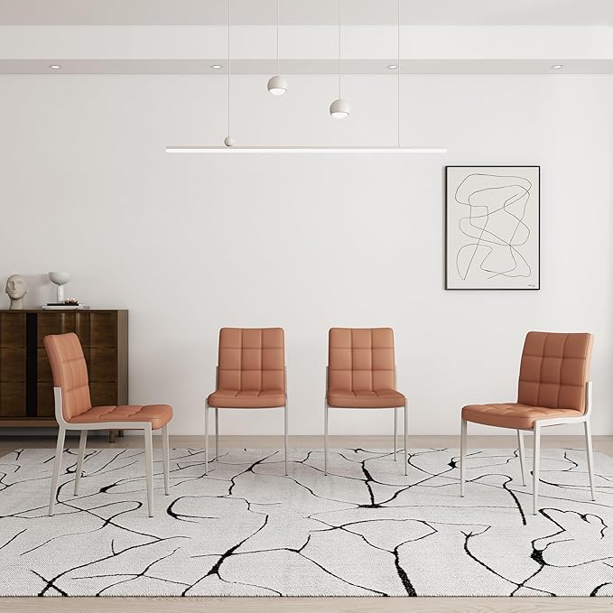 - **Design highlights:** ✨ **Vibrant orange hue to brighten the ambiance of the space** The use of highly saturated matte orange fabric gives the dining chair a vibrant visual tension, easily becoming the focal point of the dining room, kitchen or bar. Minimalist lines with curved backrest design, balancing modern artistry and classic elegance, suitable for Scandinavian, industrial and mix-and-match home styles.