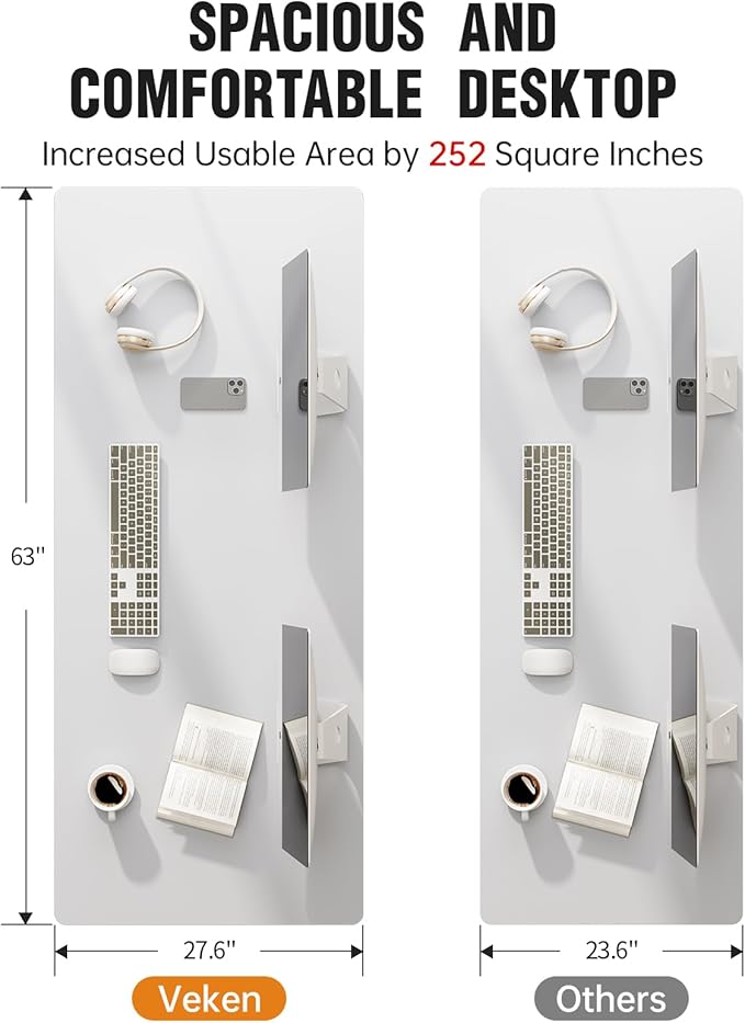 Veken 63x27.6 Inch Large Electric Standing Desk, Heights Adjustable,Sit to Stand Up, Work Home Office Computer Table for Walking Pad, Gifts for Dad, Wooden Desktop Desks, White