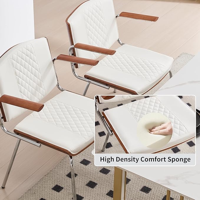 - COMFORTABLE & ERGONOMIC DESIGN – Our dining chair features a thick, soft PU leather seat and contoured backrest, providing lasting comfort for long meals and family gatherings. Perfect for modern, stylish dining rooms or kitchen spaces.