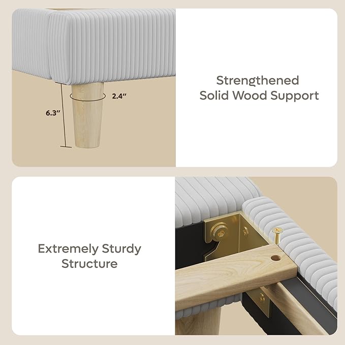 - Corduory Upholstered Bed Frame: The full bed frame is wrapped in premium corduroy fabric, featuring a vertical channel tufted design. It offers a strong structure while adding beauty, softness, and comfort to your bedroom