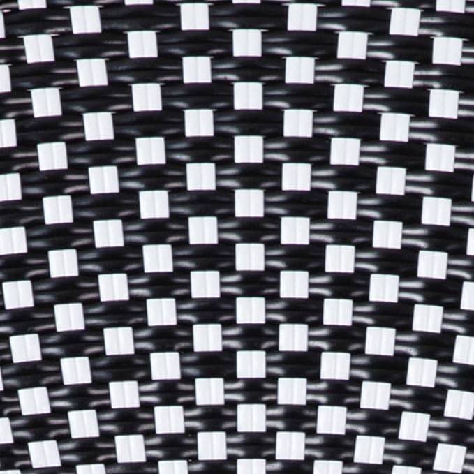 Martha Stewart Lily Pond Indoor-Outdoor Stackable Bistro Outdoor Chairs with Natural Woodgrain Aluminum Frame Finish, Black/White Woven Rattan Backrests/Seats, Set of 2