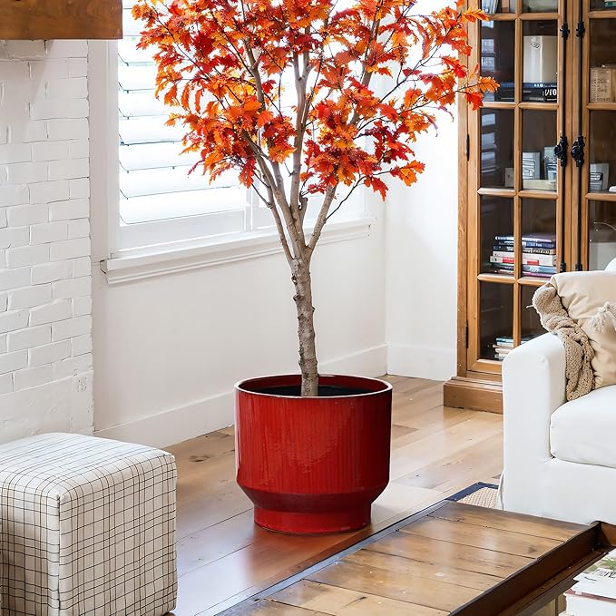 LuxenHome 13" Dia Ceramic Plant Pots, Red Glaze Indoor Outdoor Planter Pot with Drainage Hole and Rubber Plug, Modern Round Large Flower Pot for Home Garden Office or Patio