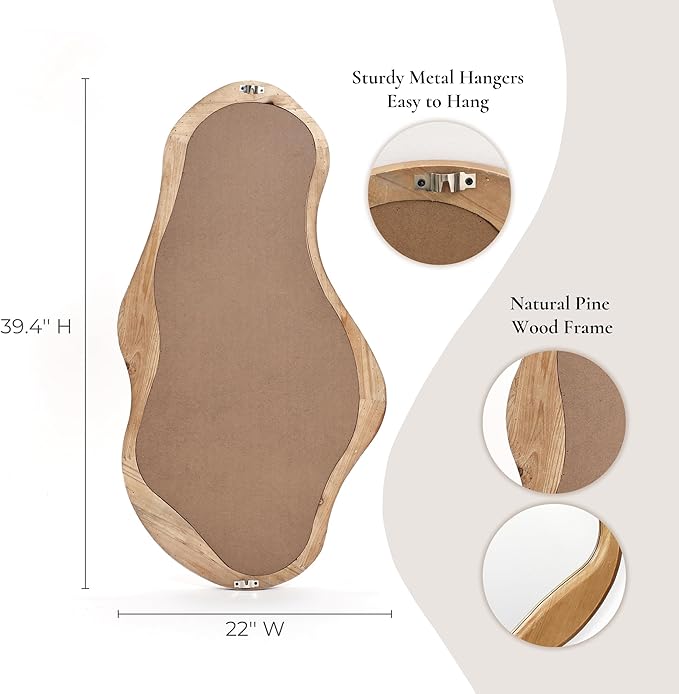 - Versatile: This asymmetrical wood mirror wall decor is both stylish and versatile, ideal for living room, bedroom, bathroom, or entryway. It serves as a statement piece, a functional daily mirror, and a stylish addition to any space.