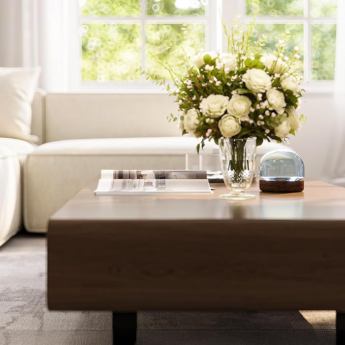 - Premium materials & craftsmanship: Constructed from premium MDF with crown walnut veneer and durable coated metal legs, the brown coffee table with storage for living room ensures stability and long-lasting beauty in your living space.