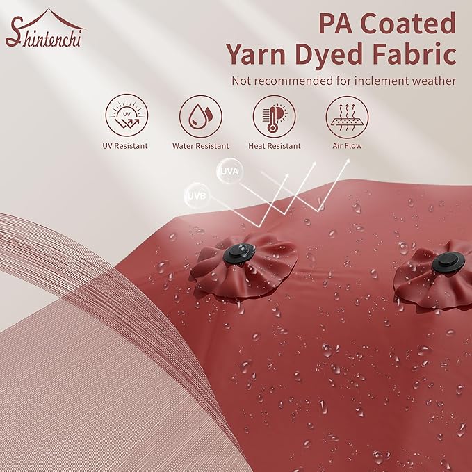 - Extra-Large Shade Coverage:15ft double-sided design creates expansive shading area, comfortably accommodating people gathering. Ideal sun protection solution for patios, poolside areas, and commercial spaces