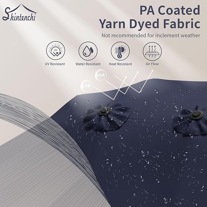 - Extra-Large Shade Coverage:15ft double-sided design creates expansive shading area, comfortably accommodating people gathering. Ideal sun protection solution for patios, poolside areas, and commercial spaces