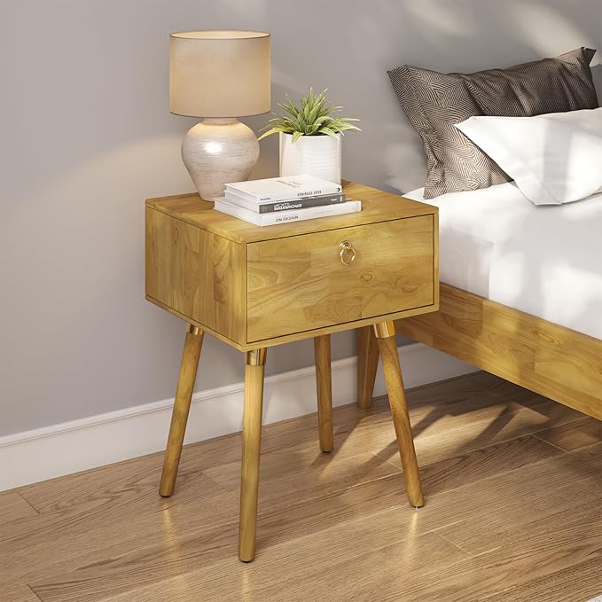 - COMPACT DESIGN FOR ANY SPACE: Modern wood nightstand offers space-saving design, making it ideal for bedrooms, living rooms, or dorms; Whether used as a mid century modern end table, walnut side table, or wood bedside table, this rubberwood nightstand blends effortlessly into any setting