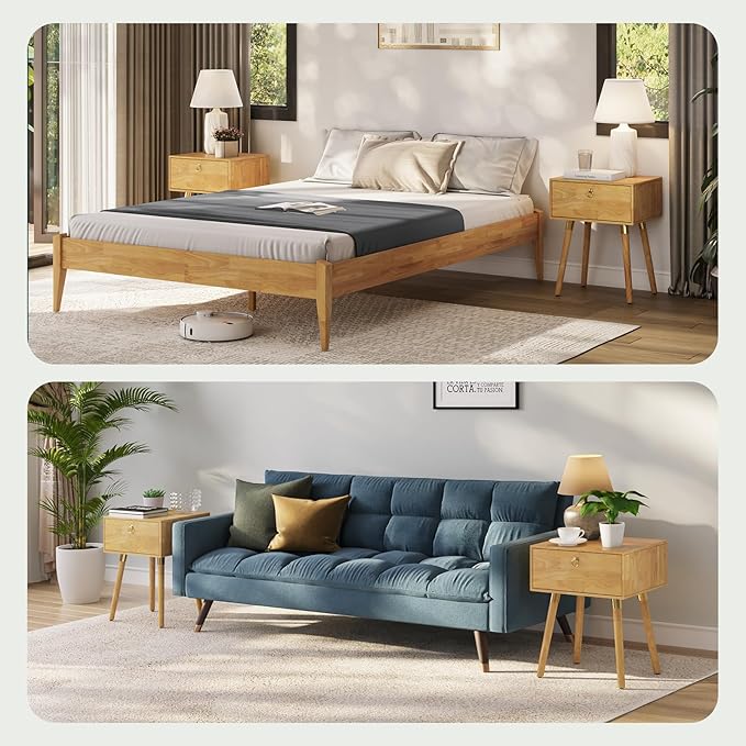 - SOLID WOOD CONSTRUCTION: Crafted from solid Rubber wood night stands for lasting durability and stability; Its sturdy build ensures reliable use, while the natural wood grain enhances the timeless charm of mid century modern furniture, whether as an end table, side table, or bedside table