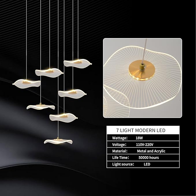 - 【Highly Artistic Chandelier】This lotus-shaped pendant lamp is highly artistic and can be perfectly installed in places with higher ceilings, such as spiral staircases or duplex apartments. It not only decorates the home but also reflects the owner's taste. It is very suitable for high ceilings, foyer, staircase, entrances,entryway.