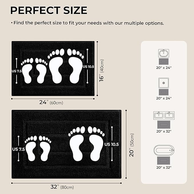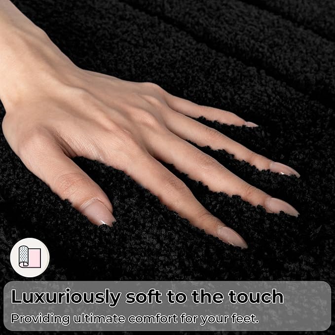 GRANNY SAYS Bathroom Rugs Sets 2 Piece,Soft Bath Mats for Bathroom, Bath Rugs Non Slip Washable, Absorbent Bath Rug for Tub, Shower and Toilet, Bath Mat Set (Black, 20" x 32" + 16" x 24")