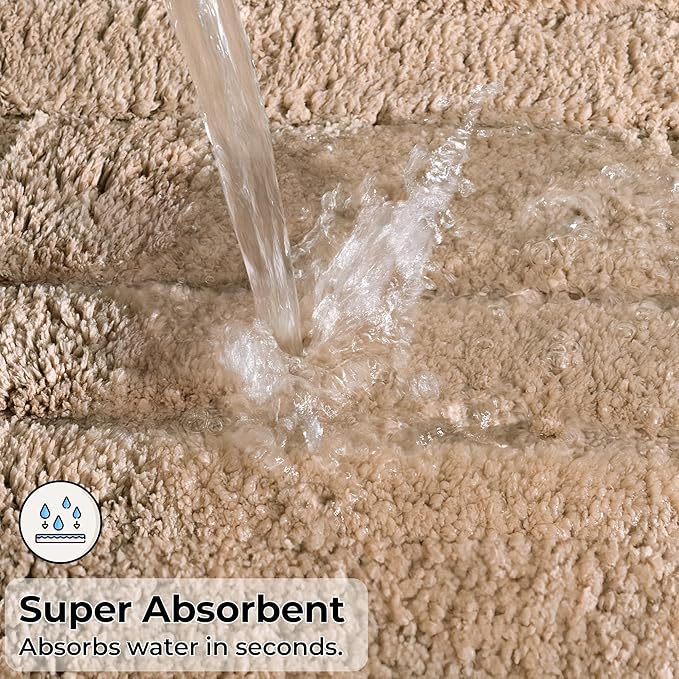 GRANNY SAYS Bathroom Rugs Sets 2 Piece,Soft Bath Mats for Bathroom, Bath Rugs Non Slip Washable, Absorbent Bath Rug for Tub, Shower and Toilet, Bath Mat Set (Khaki, 20" x 32" + 16" x 24")