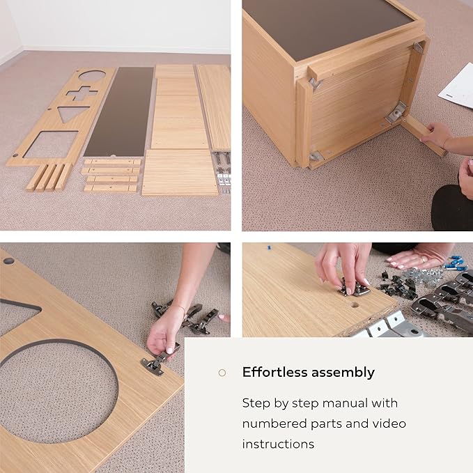 - EXPERIENCE SMOOTH 120 MINUTE ASSEMBLY as all furniture details of the living room cabinet are numbered for easy identification. This makes following the step-by-step manual and instruction video convenient. The assembly is designed to be simple, so you can start enjoying your new collection display cabinet right after unpacking.