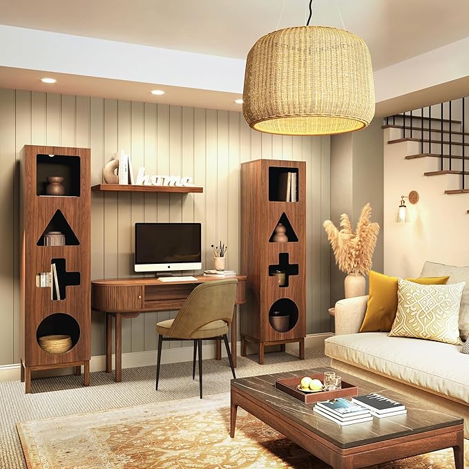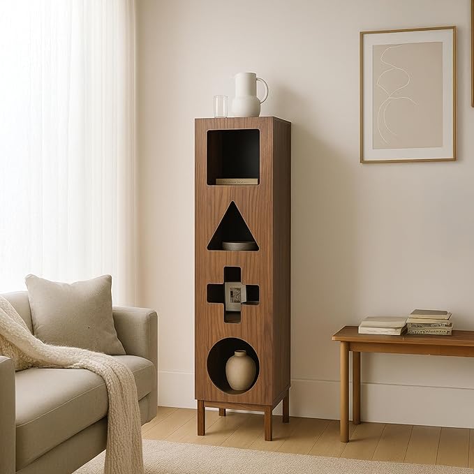 - Special Feature : 4 Display & Storage Spaces, A grade FSC certified Engineered Wood with Real Walnut Veneer, Geometric Cut-Out Door, Handle-Free Doors 4 Display & Storage Spaces, A grade FSC certified Engineered Wood with Real Walnut Veneer, Geometric Cut-Out Door, Handle-Fr… See more