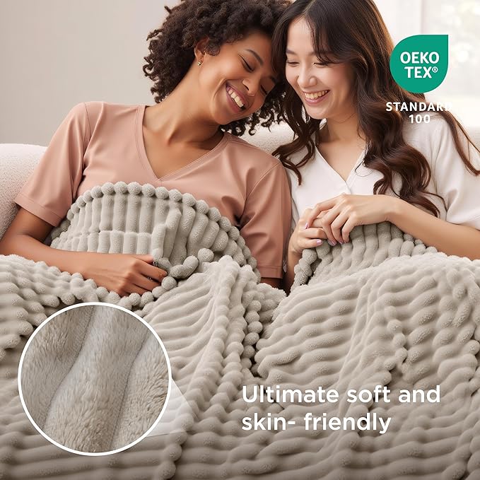 Bedsure GentleSoft Large Fleece Blanket for Bed - Cozy Soft Throw Blankets for Women, Cute Large Throws for Girls, Linen, 120x120 Inches