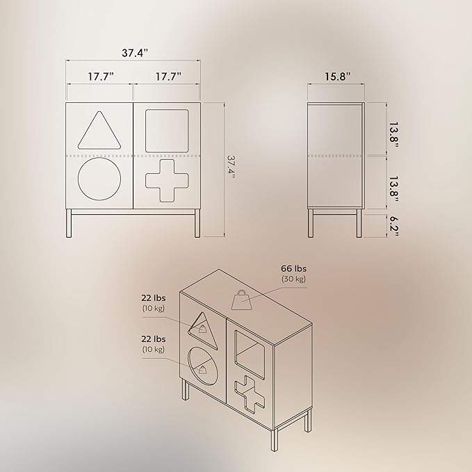 - SHOWCASE YOUR FAVORITES IN STYLE as the four geometric cut-outs in the door turn your collectibles, awards, and decorative accessories into a design feature that adds character to your space. The wide display cabinet (width 37.4’’ x depth 15.8'' x height 37.4’’) features two fixed height shelves that create four storage spaces which are perfect for display-worthy items and for organizing books, baskets, and everyday essentials.