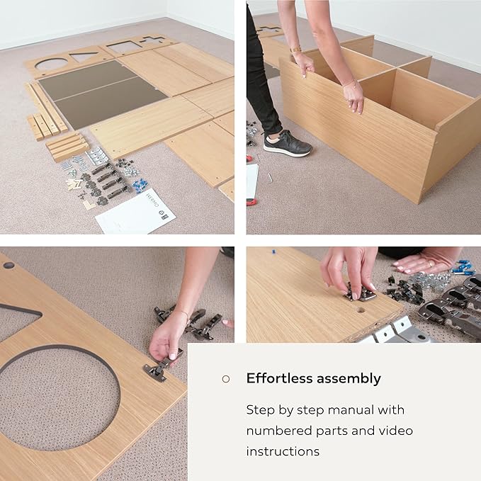 - EXPERIENCE SMOOTH 120 MINUTE ASSEMBLY as all furniture details of the living room cabinet are numbered for easy identification. This makes following the step-by-step manual and instruction video convenient. The assembly is designed to be simple, so you can start enjoying your new collection display cabinet right after unpacking.