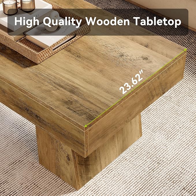 LITTLE TREE Farmhouse Coffee Table, 47 Inches Wooden Rectangular Accent Center Tables with Thick Base, Modern Low Cocktail Tea Furniture for Living Room (Rustic Brown)