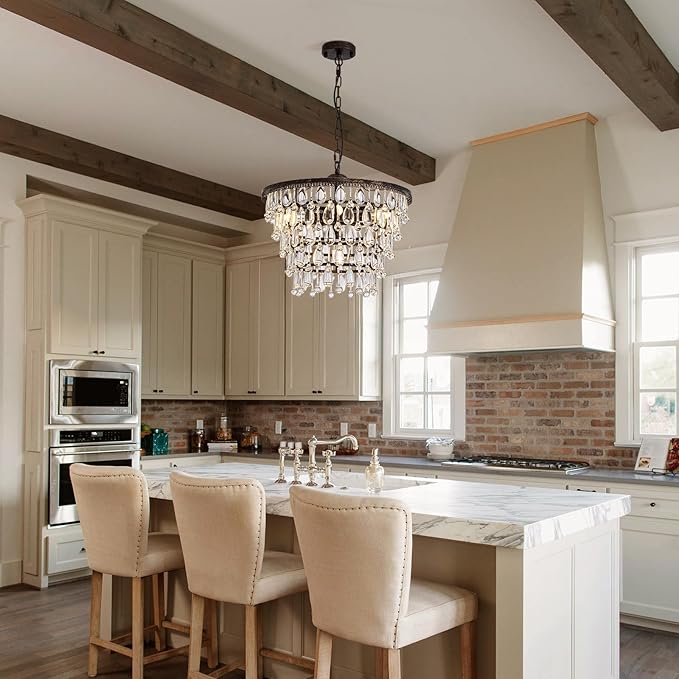 Vintage Crystal Chandeliers for Dining Room Light Fixture, 6-Light 5-Tier Antique Bronze Chandelier for Kitchen Island Bar Living Room Foyer Entryway, D20 xH17