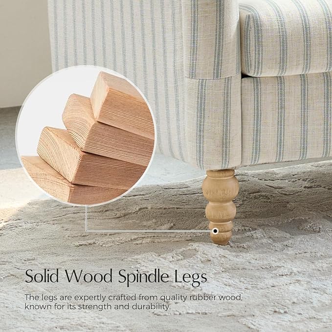 - Solid Wood Spindle Legs: Expertly crafted from premium rubberwood, the loveseat’s gourd-shaped legs blend rustic charm with modern durability. Designed to anchor your living room, bedroom, or home office, this sofa offers a distinctive farmhouse aesthetic while resisting daily wear.