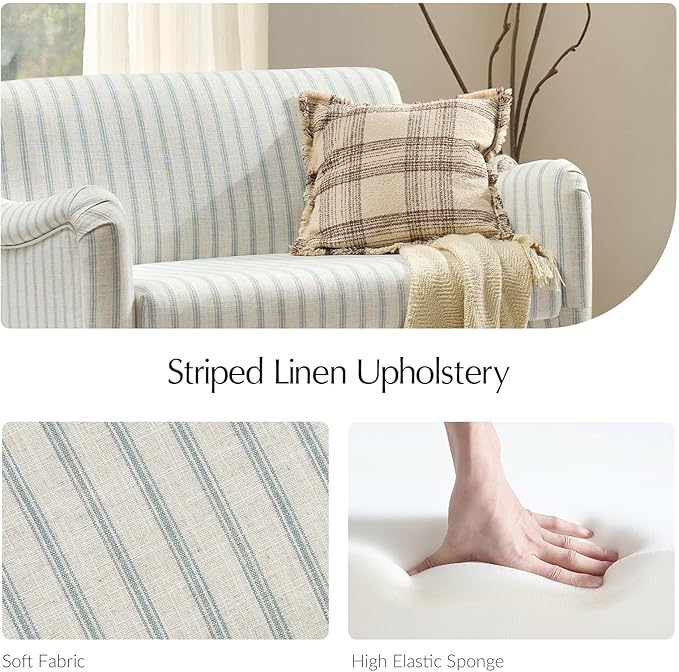 - Striped Linen Upholstery: Wrapped in breathable, tactile linen fabric, this couch features timeless stripes that pair effortlessly with wooden floors, vintage accents, or neutral decor. Ideal for sunlit bedroom nooks or cozy living room gatherings, the fade-resistant material stays fresh through years of use.