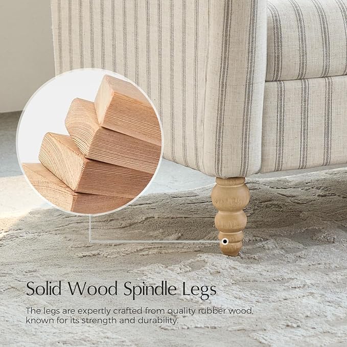 - Solid Wood Spindle Legs: Expertly crafted from premium rubberwood, the loveseat’s gourd-shaped legs blend rustic charm with modern durability. Designed to anchor your living room, bedroom, or home office, this sofa offers a distinctive farmhouse aesthetic while resisting daily wear.