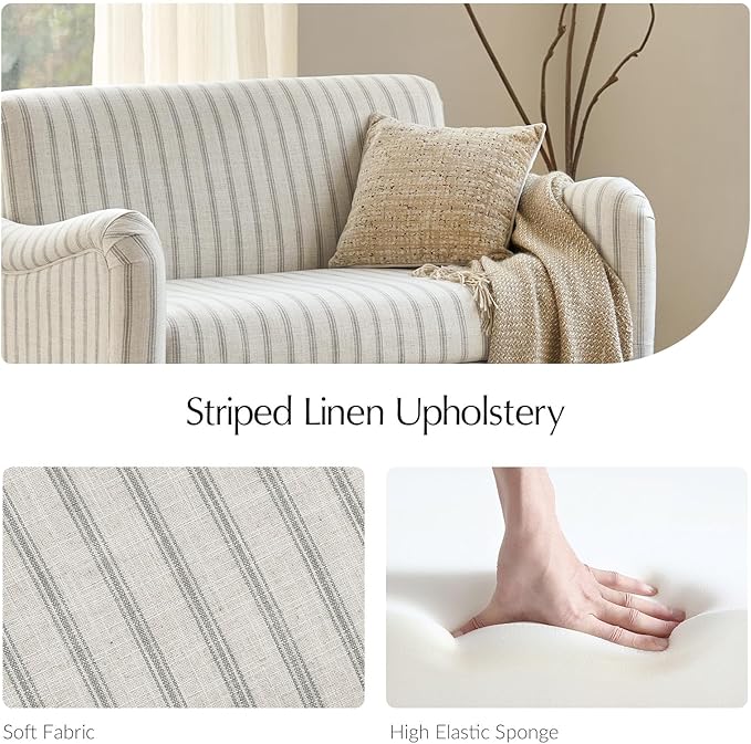 - Striped Linen Upholstery: Wrapped in breathable, tactile linen fabric, this couch features timeless stripes that pair effortlessly with wooden floors, vintage accents, or neutral decor. Ideal for sunlit bedroom nooks or cozy living room gatherings, the fade-resistant material stays fresh through years of use.