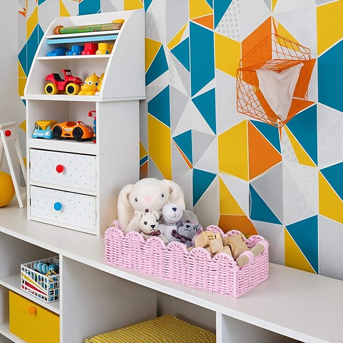 - SCALLOPED DESIGN:This shelves storage basket features a scalloped-shaped top.Both storage and decoration, also perfect as a empty gift basket
