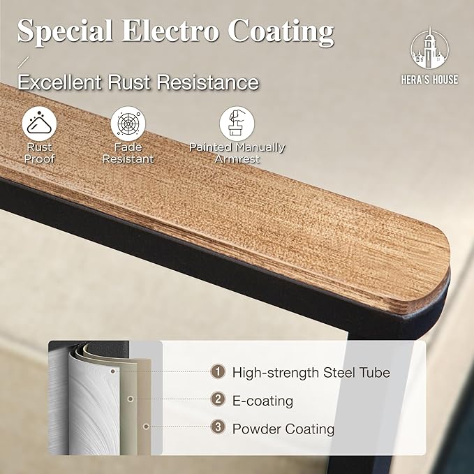 - 【E-Coating & Powder-Coating Technique】All metal components of HERA'S HOUSE patio dining sets are treated with advanced E-coating and powder-coating techniques for superior protection against rust, scratches, rain, and UV damage. They are all weather resistant, anti-rust, easy to clean, and require no special care.