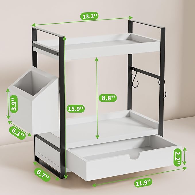 - Product size: This bathroom counter storage shelf measures 13.2"L×6.7"W×15.9"H, which can provide extra storage space for your frequently used items in a smaller space, can be used in bathroom, kitchen, living room, office, coffee bar, etc.