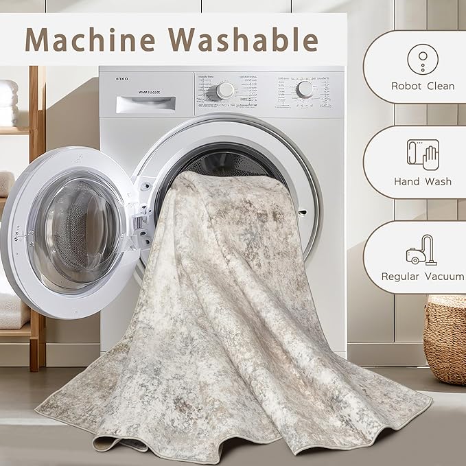 Washable Rugs 8x10 Area Rugs for Living Room,Modern Abstract Rugs for Bedroom,Large Carpets,Ultra Soft Faux Wool Retro Dining Room Rug,Non Slip&Non-Shedding Low Pile Print Rug- Beige Grey