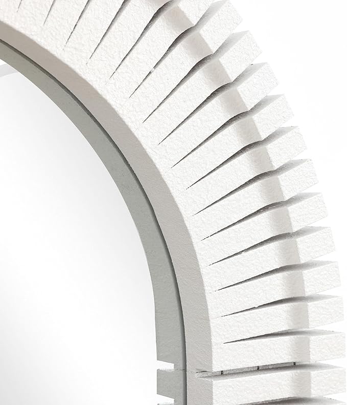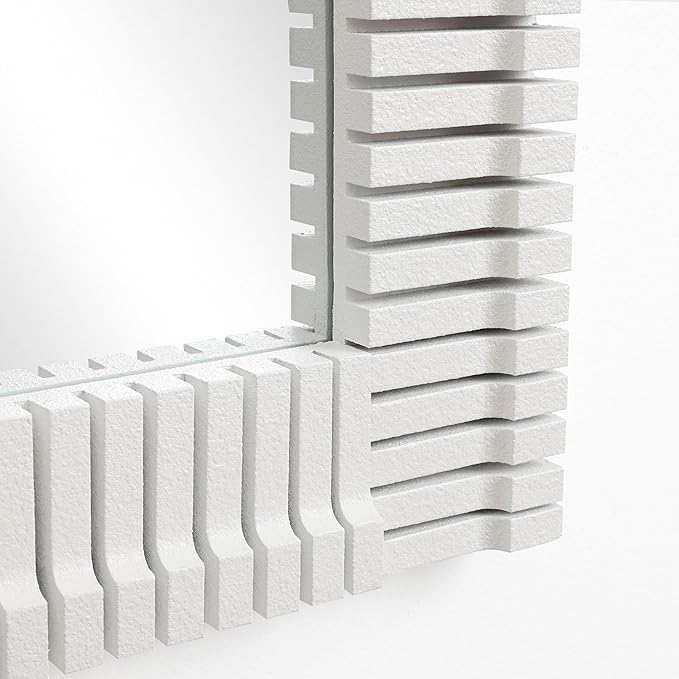 - Premium MDF Frame: Made of durable MDF, this sturdy frame resists warping and maintains its structure over time. The finely engraved details enhance its visual appeal and texture. High-definition glass for the mirror, and MDF backing for security.