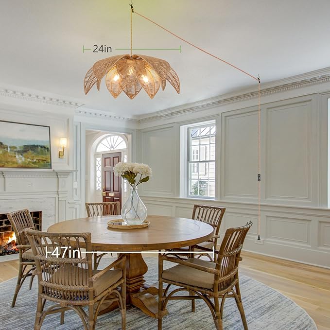 - Versatile Design: Elegant rattan pendant light featuring a woven wicker chandelier design that adds a natural, bohemian touch to any living room, bedroom, or dining space