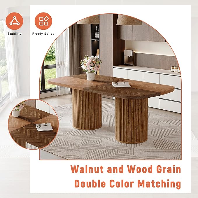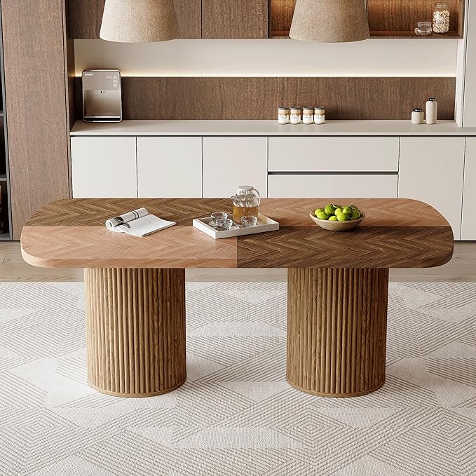 78.7" Extra Long Dining Table for 6-10 People, Farmhouse Kitchen Table with Cylindrical Fluted Bases, Modern Rectangular Dining Table for Dining Room, Kitchen, Living Room