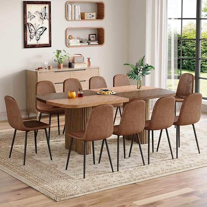 - Padded Cushion Chairs, Lasting Comfort : This modern mid-Century dining set for 10 features high-density foam cushions for a cozy feel. Faux leather chairs ensure stability and durability, supporting up to 350 lbs. Non-slip pads protect floors and prevent sliding