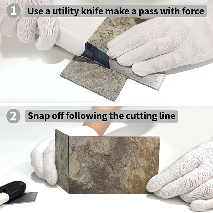 - Made of PVC composite laminate, realistic textured surface, anti-scratch, high impact, color fadeless, easy to cut with the utility knife.