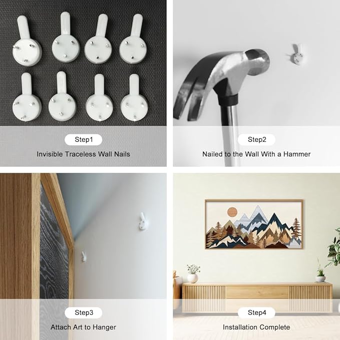 - 【Woodcut Vintage Mountain Froest Wall Art 】Transform the atmosphere of your home with wilderness country landscape decorative paintings that captivate the eye and ignite curiosity through their unique shapes and vibrant colors. These stunning pieces not only enhance your decor but also invite deeper contemplation and appreciation, making them a perfect addition to any art collection.