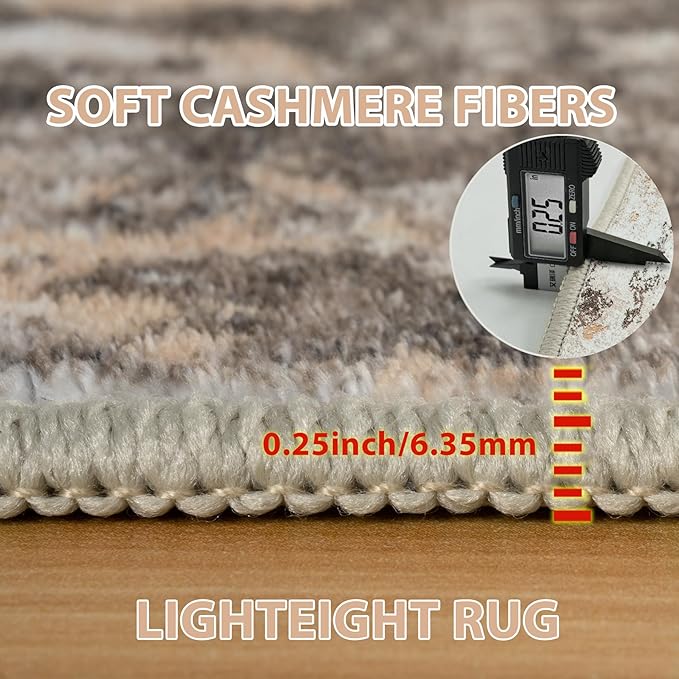 5x7 Area Rugs for Living Room Rug Washable: Abstract Rug for Dining Room Bedroom Carpet Non Slip 5 by 7 Indoor Modern Nursery Home Office Brown Beige