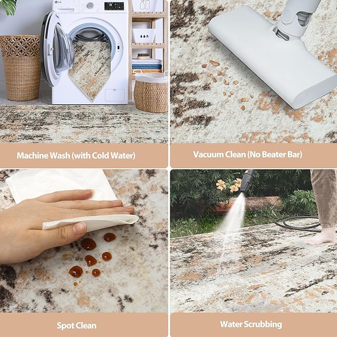 - Elegant Design: Featuring a soft-toned abstract pattern, this washable rugs 8x10 adds sophistication to any room. Its timeless design complements various interior styles, blending seamlessly with your decor