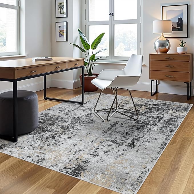 4x6 Area Rugs for Living Room Rug Washable: Abstract Rug for Dining Room Bedroom Carpet Non Slip 4 by 6 Indoor Modern Nursery Home Office Black Grey Gold