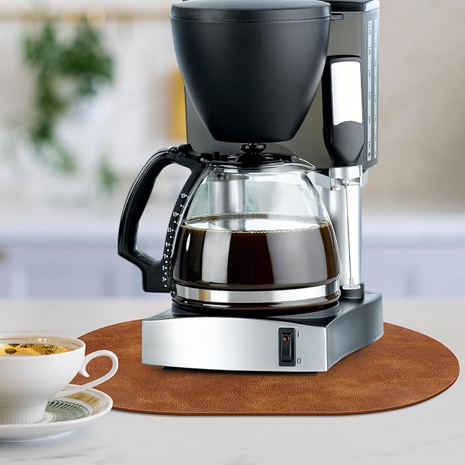ADRIMER Placemats, Heat Resistant Oval Placemats Set of 4 Washable 12 x 17 Inch, Waterproof Table Mats, Wipeable Pu Place Mats for Kitchen, Dining Room, Turmeric Brown