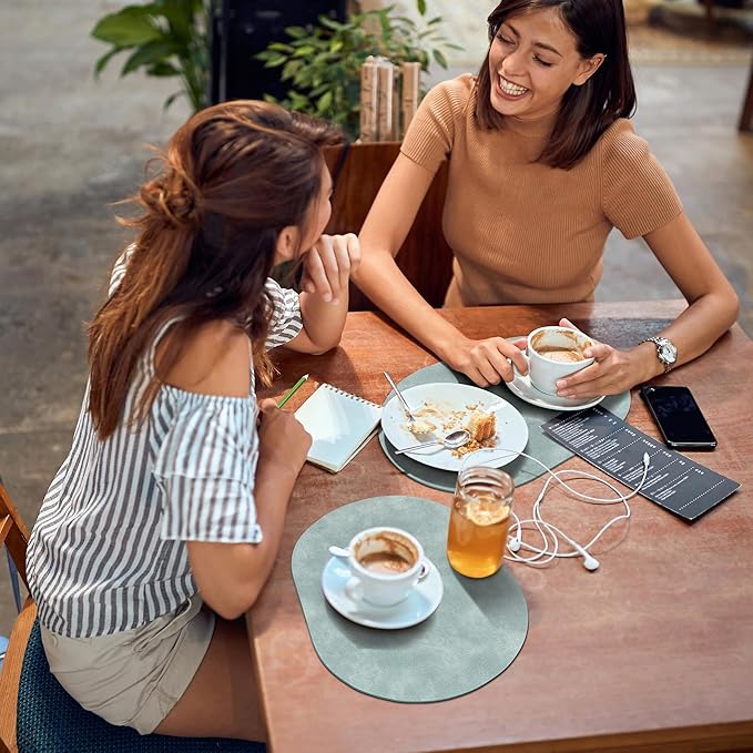 ADRIMER Placemats, Heat Resistant Oval Placemats Set of 12 Washable 12 x 17 Inch, Waterproof Table Mats, Wipeable Pu Place Mats for Kitchen, Dining Room, Light Blue