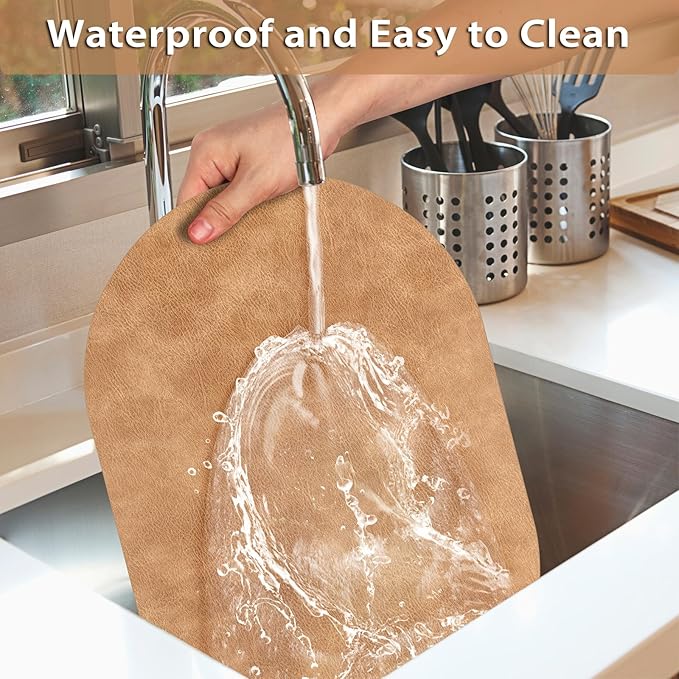 - Premium Quality: The faux leather material is substantial and well-crafted, ensuring that these table mats will last for a long time. Their heat-resistant and waterproof qualities protect kitchen table from the perils of hot dishes and spills, ensuring that your eating space remains stylish and unstained.